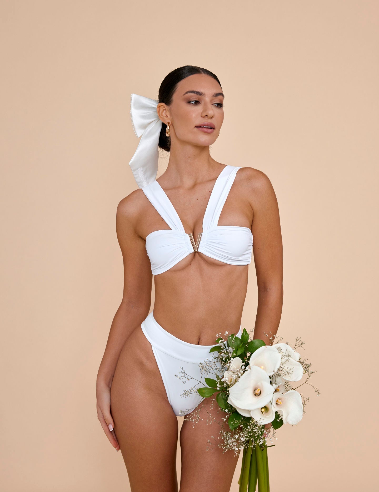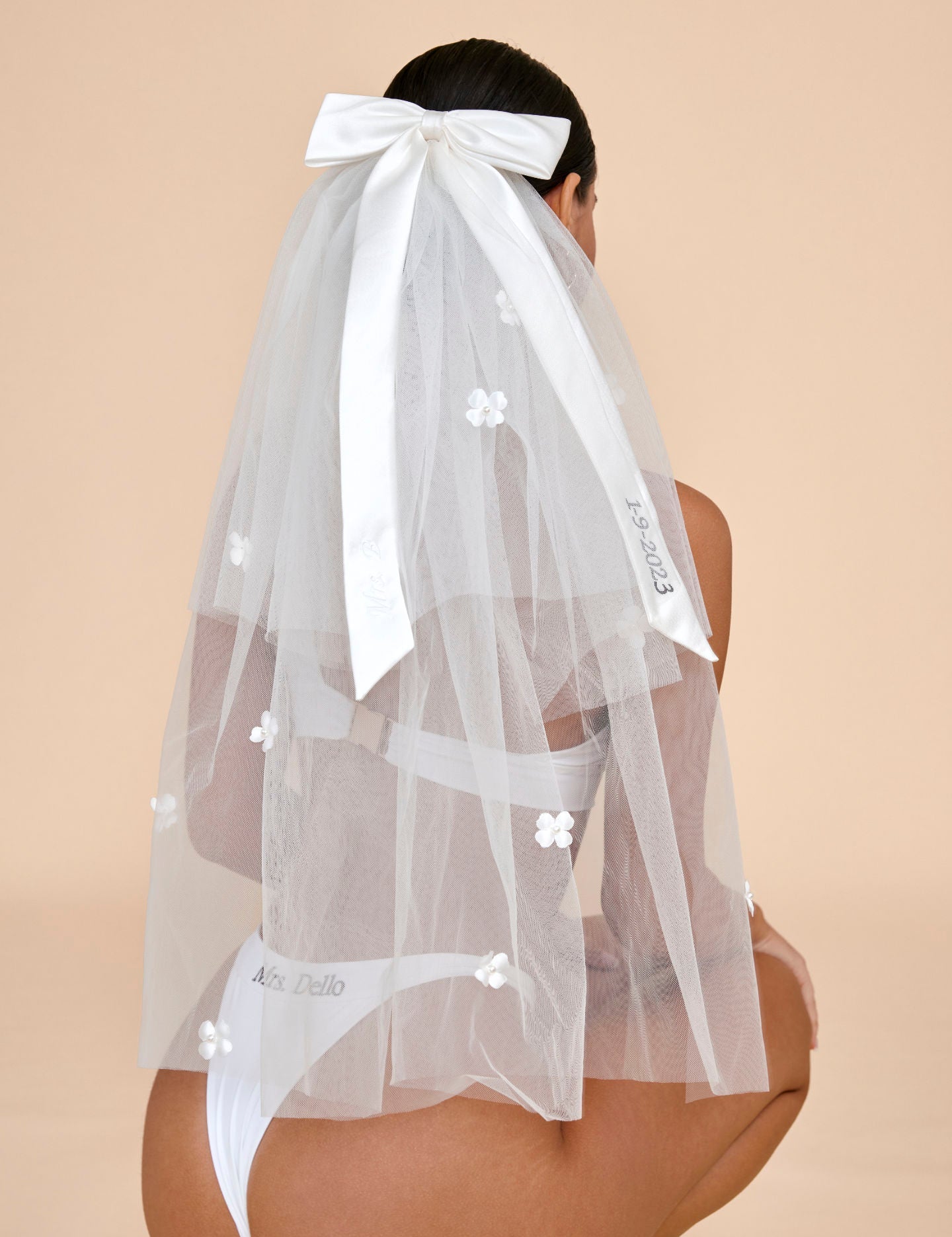 All eyes on you — from timeless white one-pieces to delicate veils and tote bags, each piece made uniquely yours.