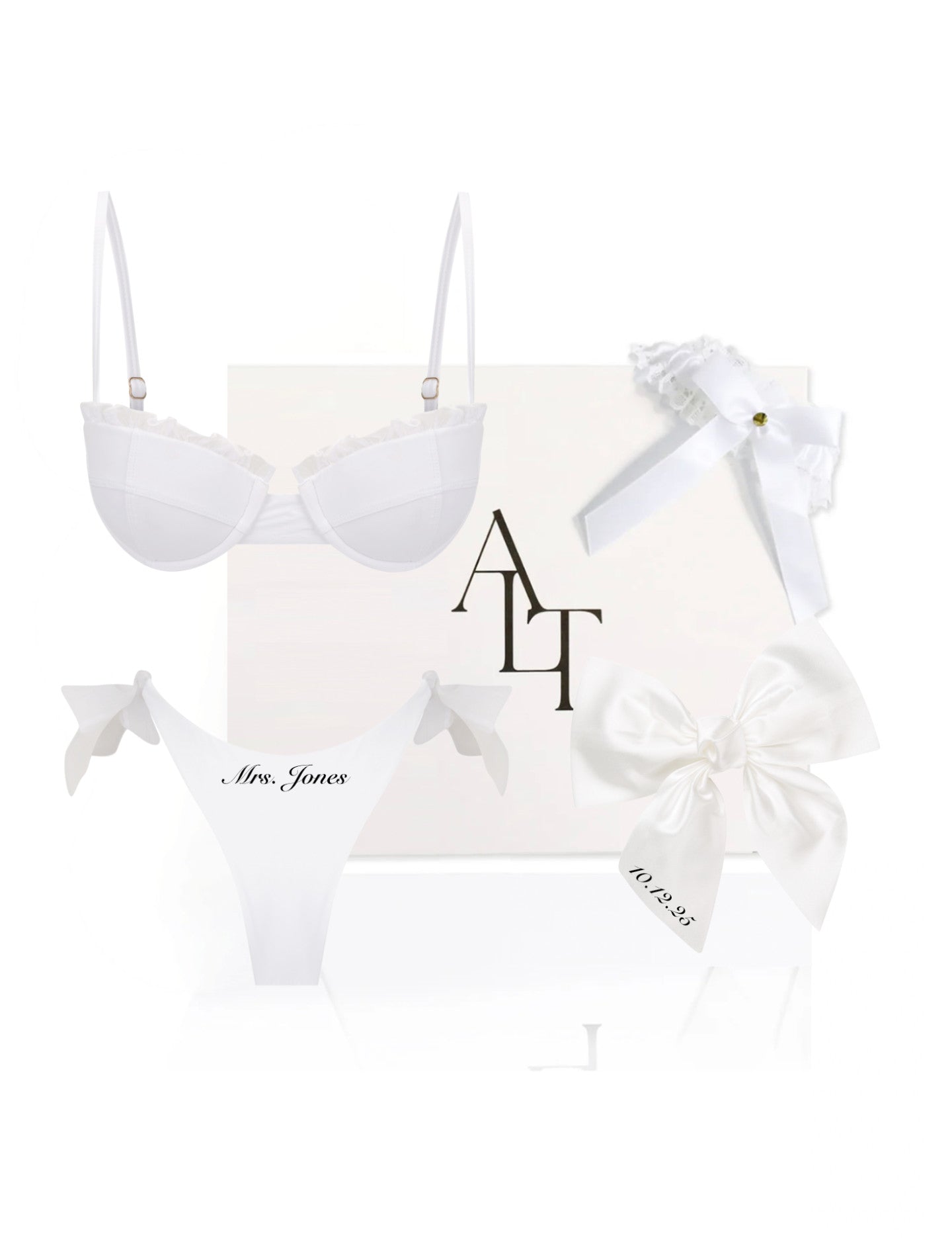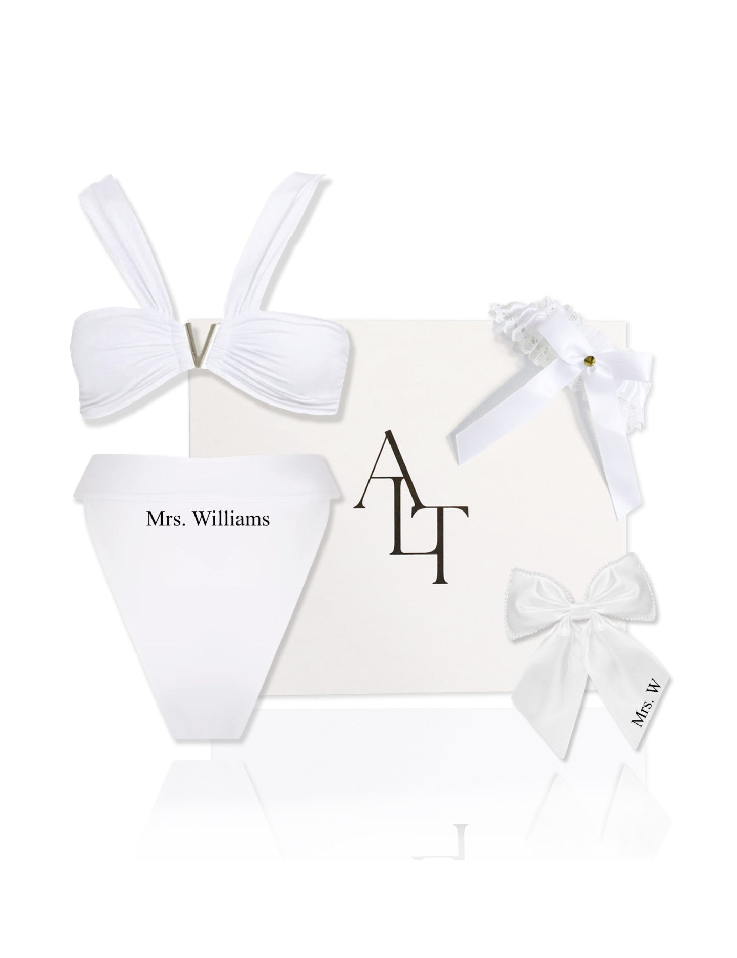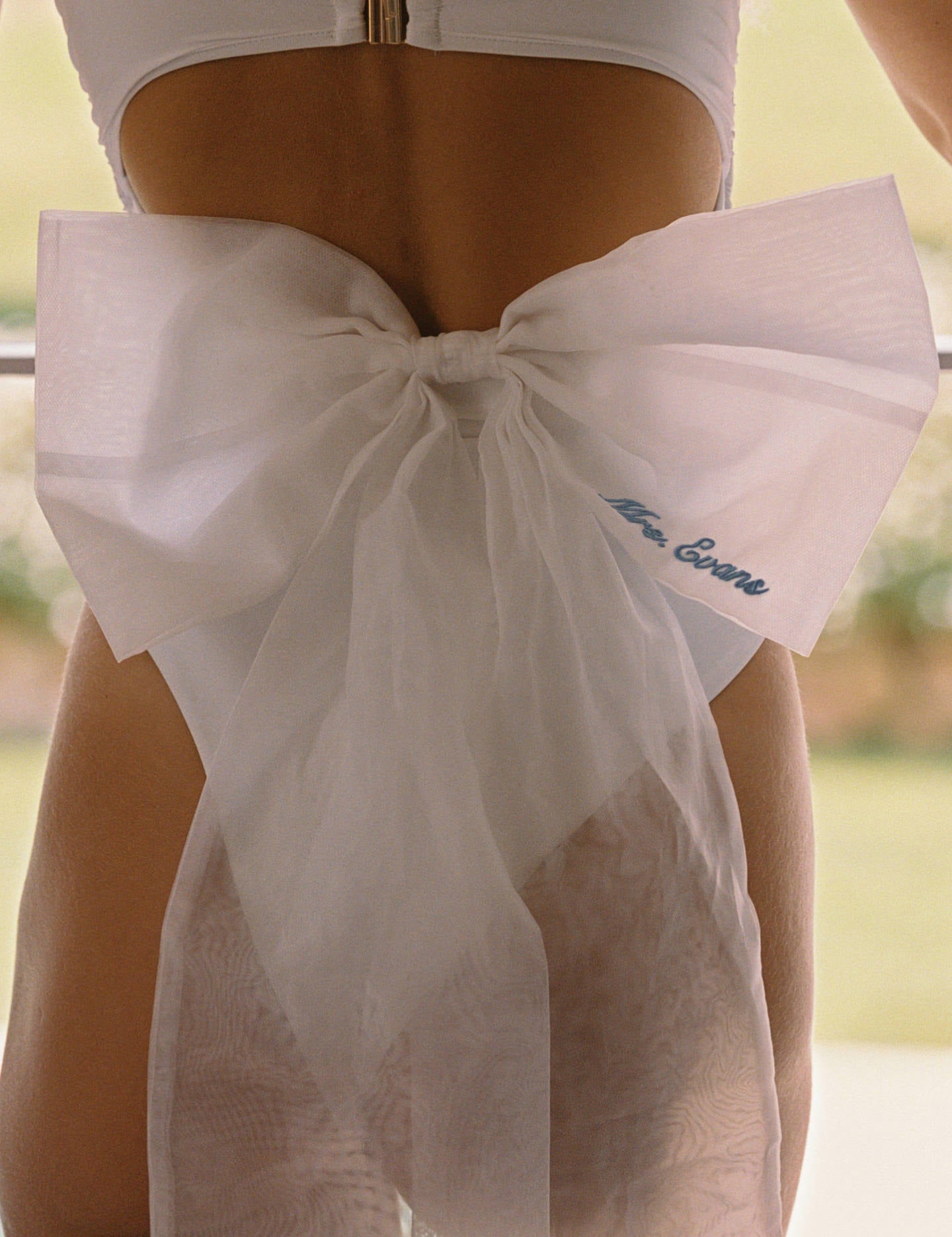 We offer free personalization on bridal swimwear and accessories - learn more about the process of making your piece a one-of-a-kind.