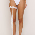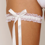 The Élan Garter is a refined bridal keepsake, crafted from soft satin and edged with delicate lace. Finished with a romantic bow and trailing ribbons, it’s designed to add an elegant touch to your wedding, bachelorette or honeymoon wardrobe.