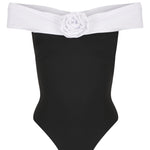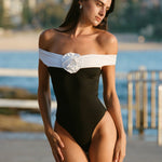 Embrace effortless beauty with the Emilia one piece. Featuring elegant off-shoulder straps and a delicate rose detail at the centre, this design is perfect for those seeking a unique yet timeless look.