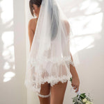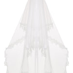 The Florence Veil is a stunning bridal accessory crafted from ivory tulle, featuring delicate floral details that cascade gracefully along the edge. This veil showcases hand-placed embroidered flowers, adding a touch of ethereal beauty to any bridal look.