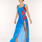 Elevate your style with our stunning Odette, a semi-sheer asymmetrical maxi dress in Hana print. Designed to captivate with its graceful lines and intricate details, making every step a mesmerizing dance of elegance.