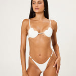 Our Tesoro heart shaped cheeky bottoms in white. Featuring bespoke gold ALT heart hardware detail.