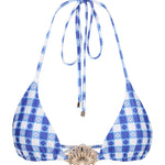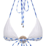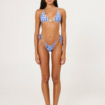 The Alze Bikini Bottom in Santorini Print offers adjustable self-tie sides, ensuring minimal tan lines and a versatile fit.