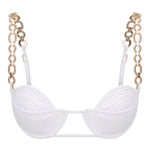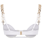 Meet the Andi, where luxury and comfort intertwine. Featuring a beautifully crafted moulded underwire cup and exquisite custom gold chain straps, it exudes effortless elegance and style.