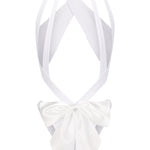 Elevate your bridal style with the limited released 'Bellisa' - The Suit of Love. A luxurious one-piece swimsuit designed to create unforgettable memories. Featuring unique back detailing, a removable bow, and a custom gold neck clip made from our signature butter soft material, this swimsuit exudes elegance and allows for personalized touches of up to 8 letters embroidered on the front of the suit. Please note due to the placement of the embroidery we can only offer a max of 8 letters.