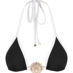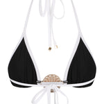 The Milana is an everyday bikini top adorned with bespoke gold and pearl shell hardware for an irresistible touch of luxury.
