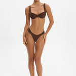 The Mira Top marries structured support with soft femininity, featuring underwired cups and elegant gathered detailing. Designed with a ruched bust, adjustable shoulder straps, and a secure back tie, this silhouette blends romance with functionality.