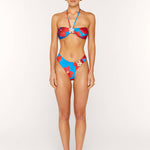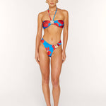 Peony bikini top in our captivating Hana print is cut in a classic bandeau style with adjustable halter neck ties and adorned with new custom flower gold hardware at centre.