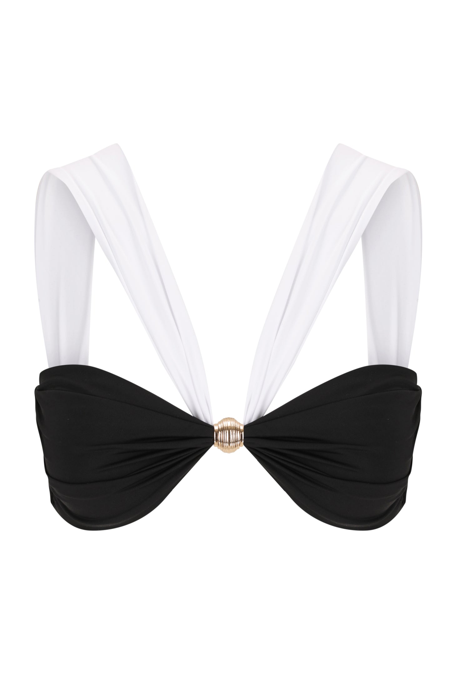 The Roza Top is a bikini top cut inspired by our best-selling Jacques bikini top and Harlow one piece. Featuring chic custom gold hardware at front.