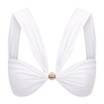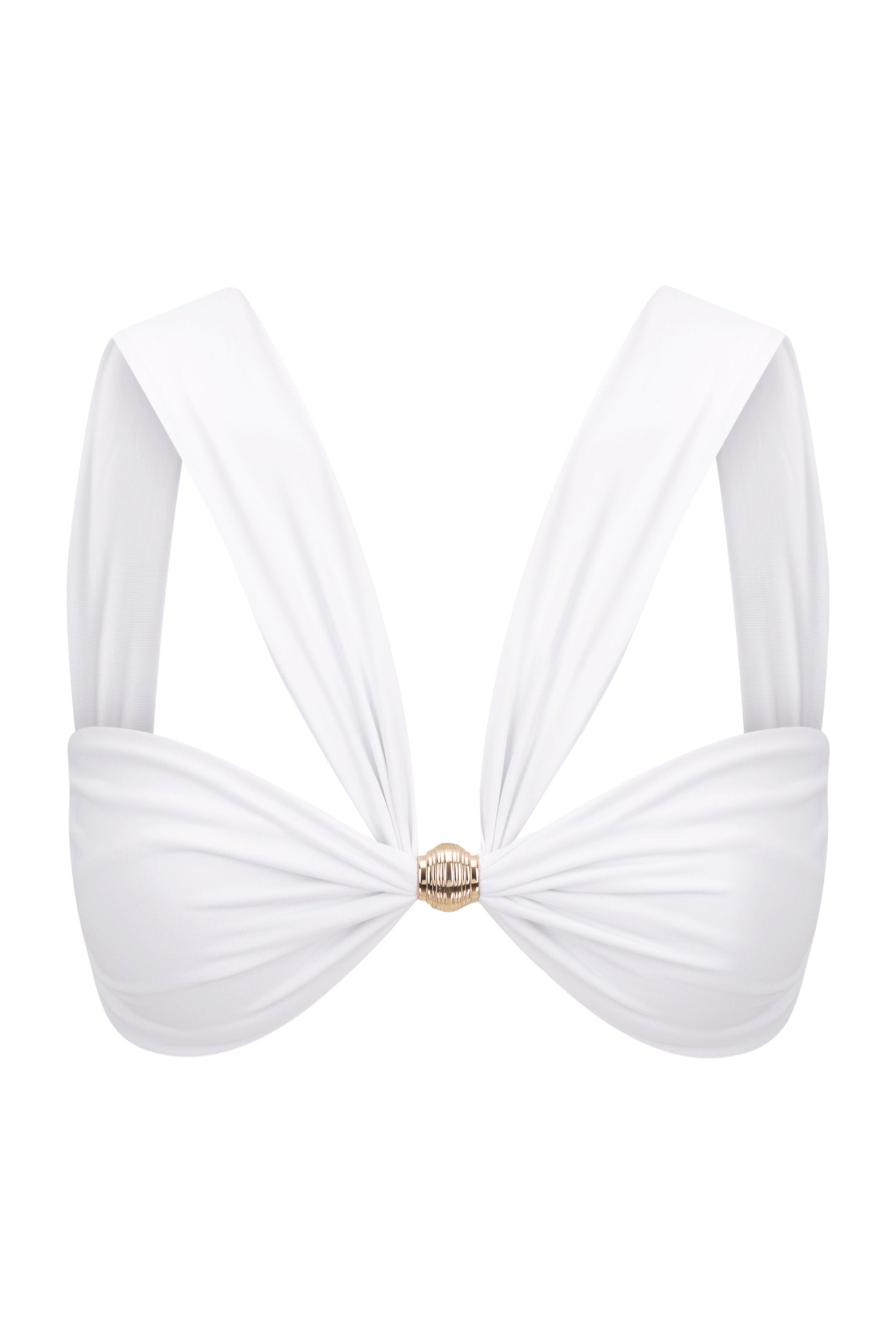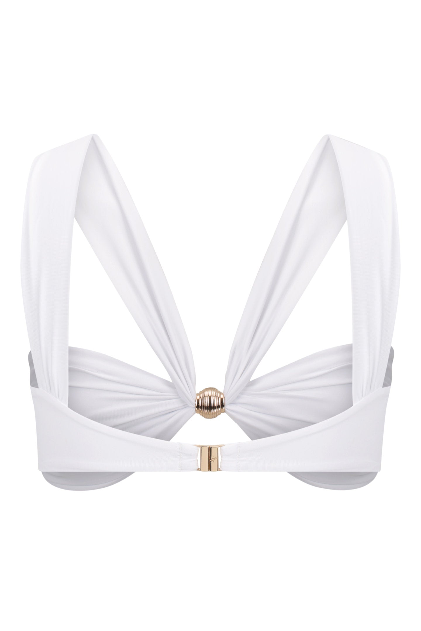 Indulge with our Roza Top in White. This must-have piece is inspired by our best-selling Jacques bikini top and Harlow one piece, featuring chic custom gold hardware at front.