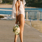 "I wore my custom alt swimwear and veil for my bachelorette in Positano and it was absolutely perfect. It was so fun getting to show off the Mrs. on my swimsuit bottoms and our wedding date on the veil <3"