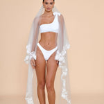 "I wore my custom alt swimwear and veil for my bachelorette in Positano and it was absolutely perfect. It was so fun getting to show off the Mrs. on my swimsuit bottoms and our wedding date on the veil <3"