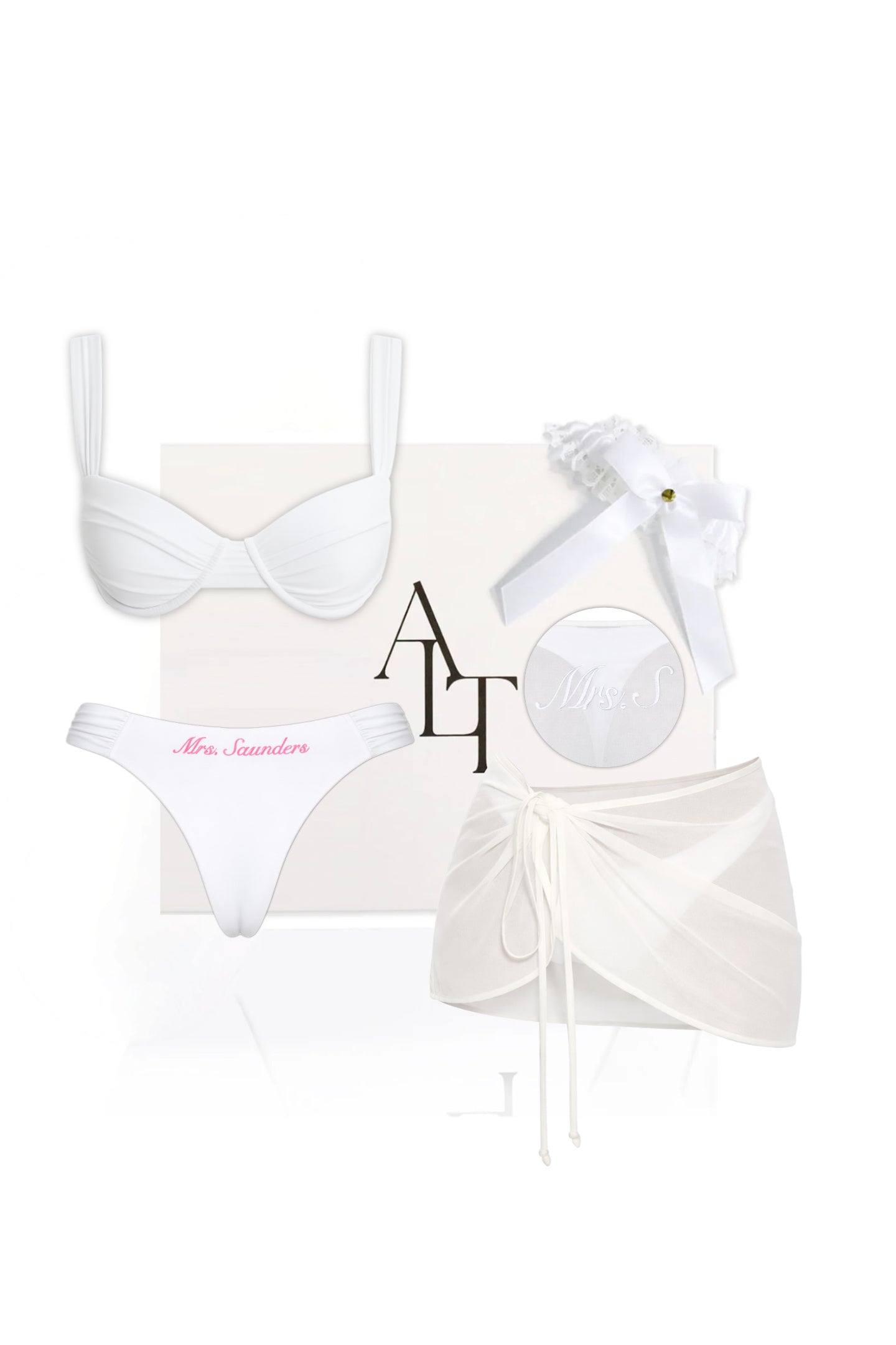 Our Summer Bliss Bundle combines the popular Mira and Adelina bikini duo with the Blair Sarong and Paris Garter.